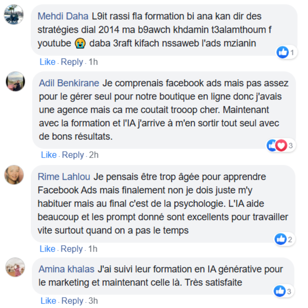 Cette réussite m’a permis de lancer mon agence. Aujourd’hui, je gère des campagnes pour plusieurs marques e-commerce au Maroc, et je passe mon temps à décortiquer les stratégies de Grüns, Blissy, Gymshark pour les adapter au contexte marocain.